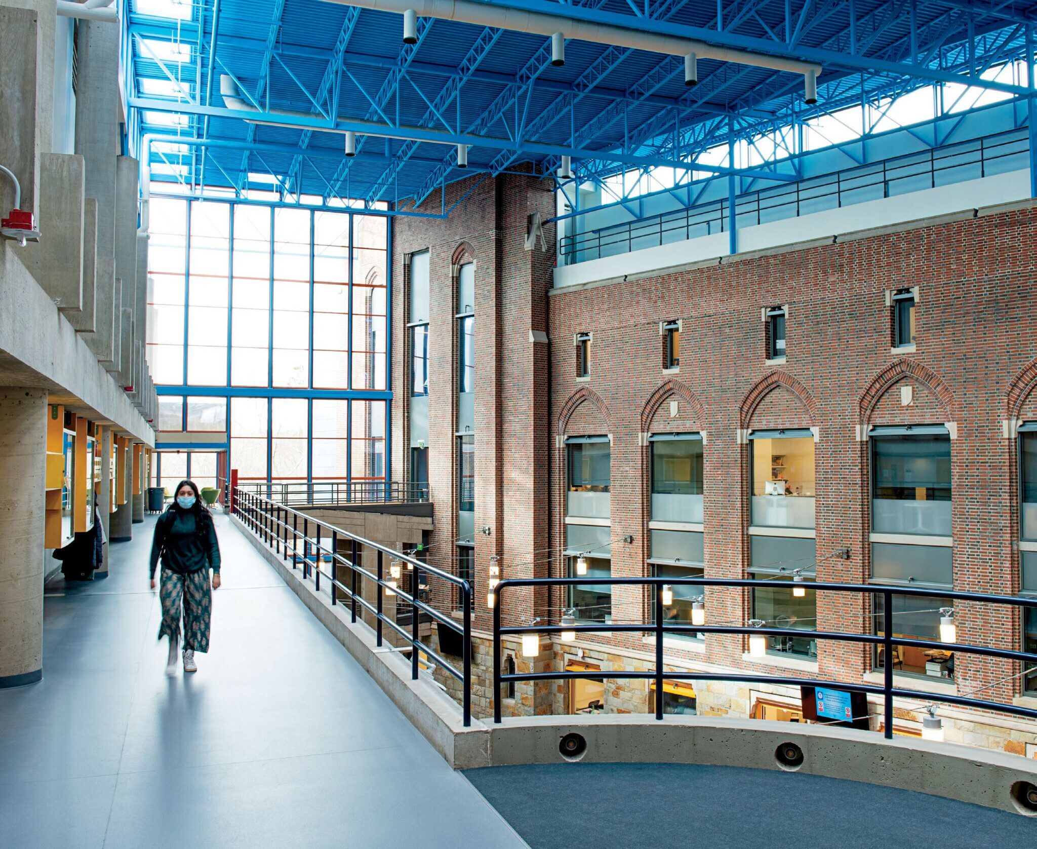 In January, Wellesley welcomed students, faculty, and staff into the complex, which encompasses more than 275,000 square feet of sustainably designed space and combines renovations to the College’s historic structures with new spaces for research, collaboration, and teaching. The complex has four entrances, on a north-south-east-west axis, and it is far more accessible than it was in the past.
