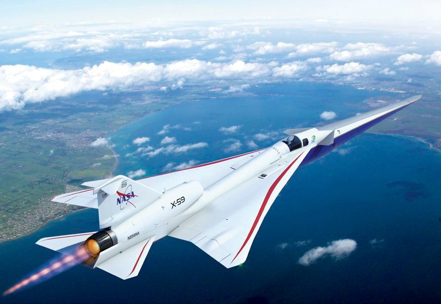 In January NASA, along with Lockheed Martin, unveiled the X-59 plane, a quiet, supersonic, 99.7-foot aircraft that’s sleek with a long, pointed nose. It can travel at 1.4 times the speed of sound, or 925 mph.